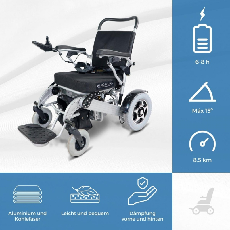 Elektrorollstuhl | Faltbar | 17 km | Aluminium | Einstellbar | Sicher und komfortabel | Troya | Mobiclinic