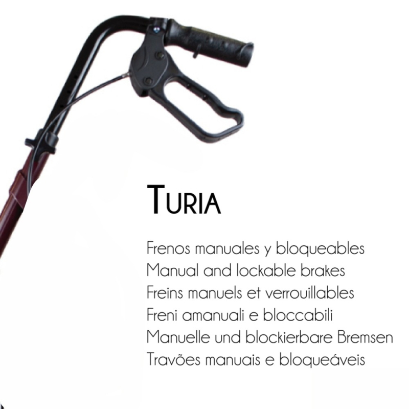 Rollator | Faltbar | Handbremsen | 4 Räder | Sitz und Rückenlehne | Bordeaux | TURIA | Clinicalfy