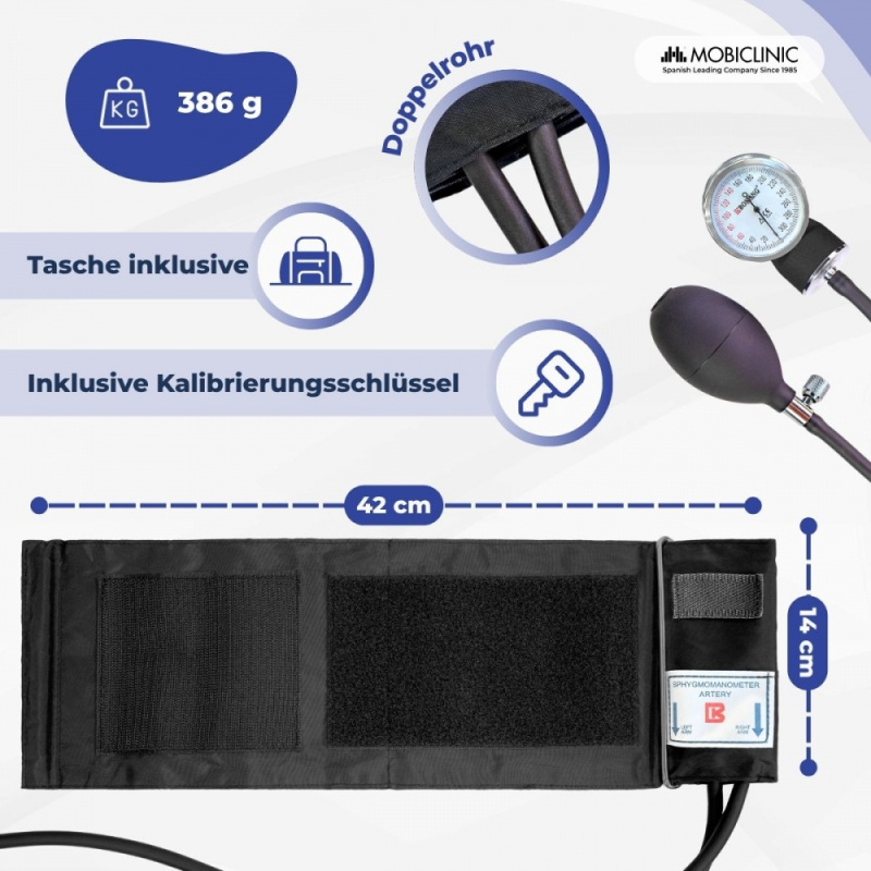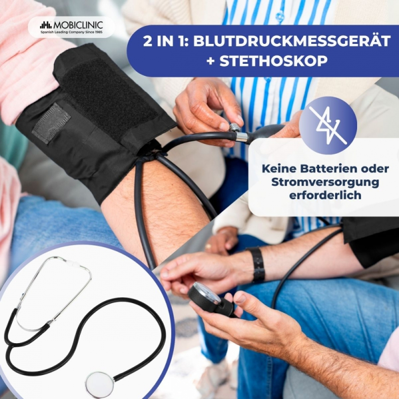 Manuelles Arm Tensiometer und Stethoskop Pack | Aluminium Doppelglockenstethoskop | Mobiclinic