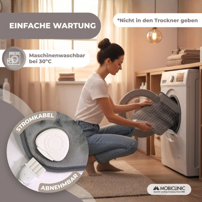 Rücken- und Nacken-Heizkissen | 62x43 cm | 3 Temperaturstufen | Abschaltautomatik | Mobiclinic