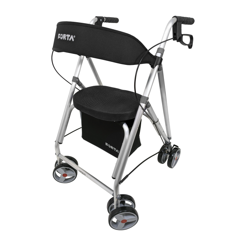 Gehhilfe mit Sitz | Aluminium | 4 Räder | Schwarz | Kanguro HD | FORTA
