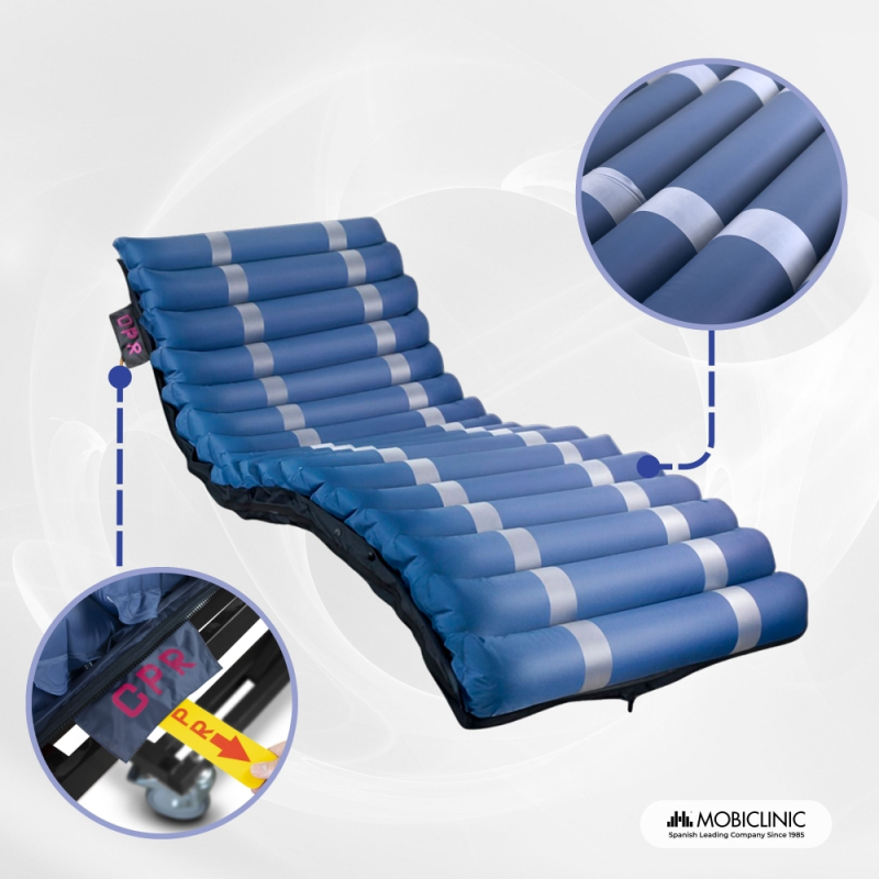 Die Anti-Dekubitus-Matratze MOBI 3 mit Luftzellen trägt zur Verbesserung der Lebensqualität von Patienten bei, die lange Zeit im Bett bleiben müssen, und ist die wirksamste Lösung zur Vorbeugung von Geschwüren und Wundliegen . Sie verfügt über ein Einstellrad zur Regulierung des Luftdrucks. Diese Anti-Dekubitus-Matratze ist einfach zu handhaben und wird für Patienten mit einem mittleren bis hohen Dekubitusrisiko empfohlen, insbesondere für Patienten mit Grad I, II und III.