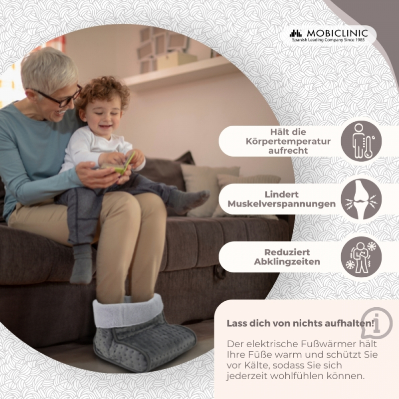 Elektrischer Fußwärmer | Wolle und Fleece | 30x30x24 cm |Grau | Mobiclinic