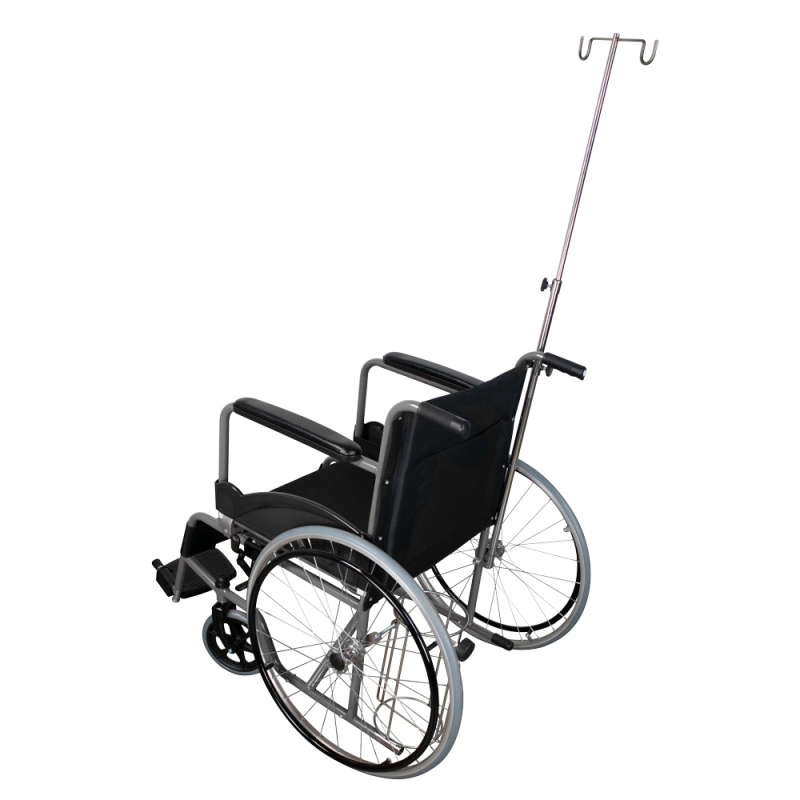Der Tropferhalter ist ein Zubehörteil, mit dem der Benutzer den Tropf am Rollstuhl anbringen kann. Die Höhe ist von 77 bis 142 cm verstellbar, so dass der Benutzer sie nach seinen Bedürfnissen einstellen kann. Außerdem ist der hohe Teil, an dem die Tropfer angebracht sind, 24 cm hoch.