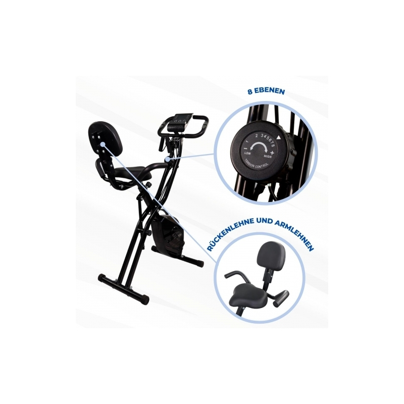 - Der Heimtrainer EVEREST wurde für Benutzer mit Einsteigerniveau entwickelt, da Sie ihn über 8 Stufen des magnetischen Widerstands entsprechend den Bedürfnissen und der körperlichen Verfassung des Benutzers regulieren und anpassen können. Sie können nicht nur Ihre Beine trainieren, sondern dank der mitgelieferten Gummibänder auch Oberkörperübungen durchführen.