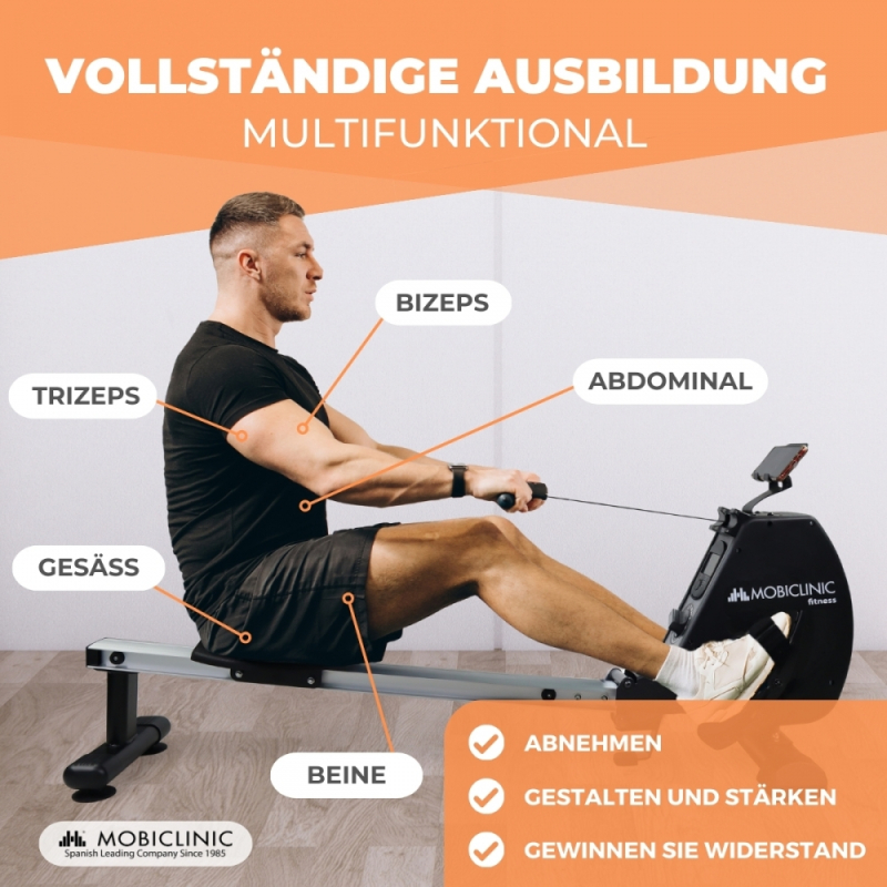 Rudergerät | Klappbar | Schwungrad 6 kg | 8 Widerstandsstufen | Max. 120 kg | Schwarz | RowFit | Mobiclinic