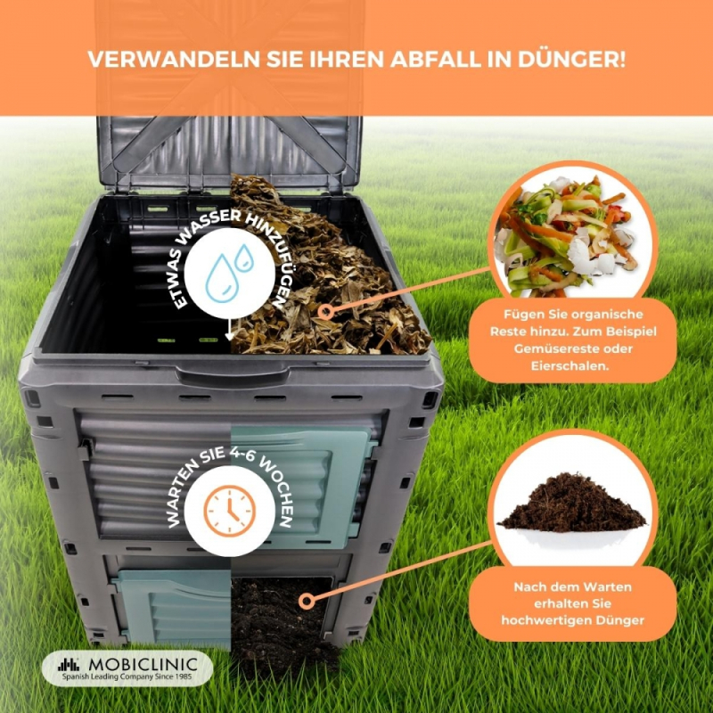 Komposter | Abfalltransformator | Für den Garten | Ohne Werkzeug | Umweltfreundlich | 300 Liter | BioBin | Mobiclinic