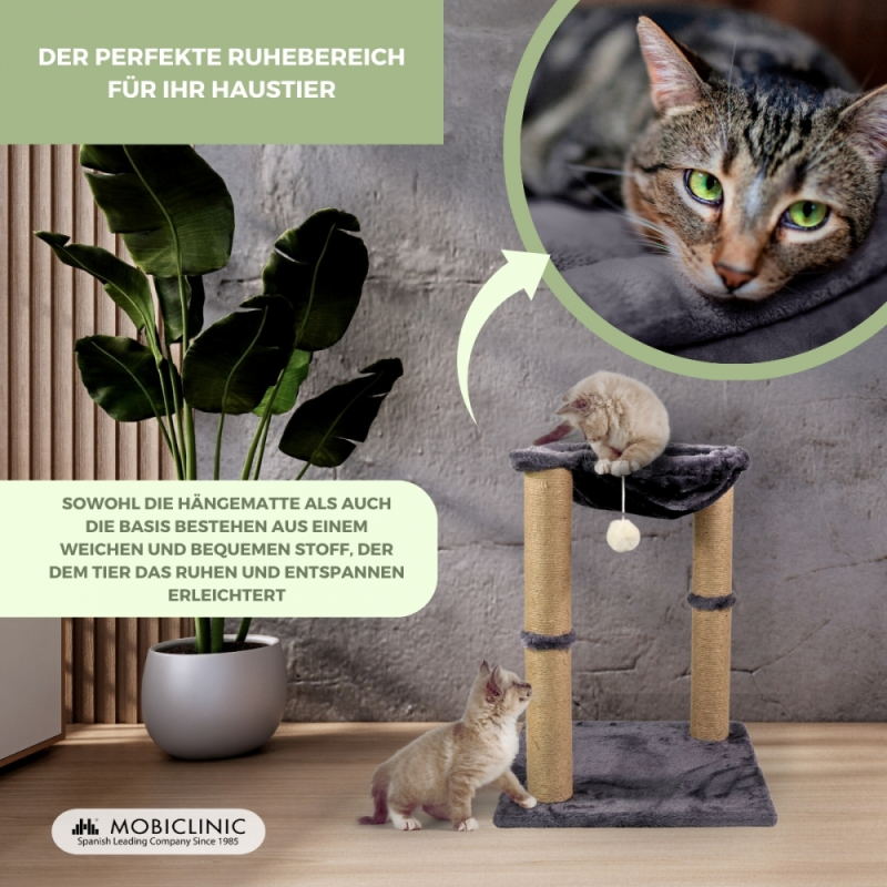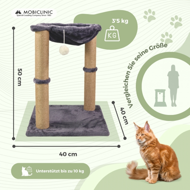 Kratzbaum für Katzen | Mit Hängematte | 40 x 40 x 50 cm | Leicht | Widerstandsfähig | Max. 10 kg | Milo | Mobiclinic