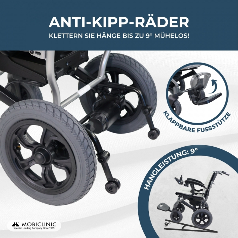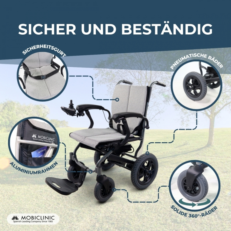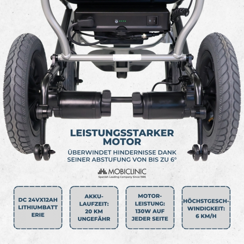 Elektrorollstuhl | Faltbar | Aluminium | Dualmodus | 20 km Reichweite | Bis zu 100 kg | Verona | Mobiclinic