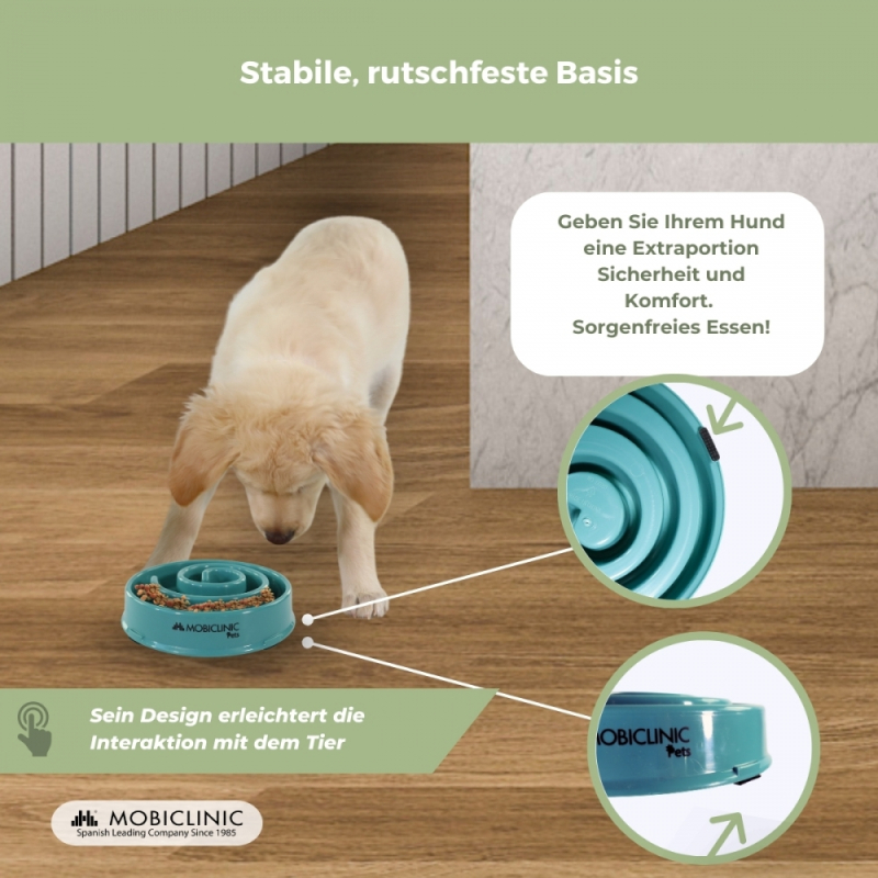Langsamer Futterspender gegen Völlerei | Rutschfest | 500ml | 19,5x4,6x20,6cm | Einfache Reinigung | Grün | MobiEat | Mobiclinic