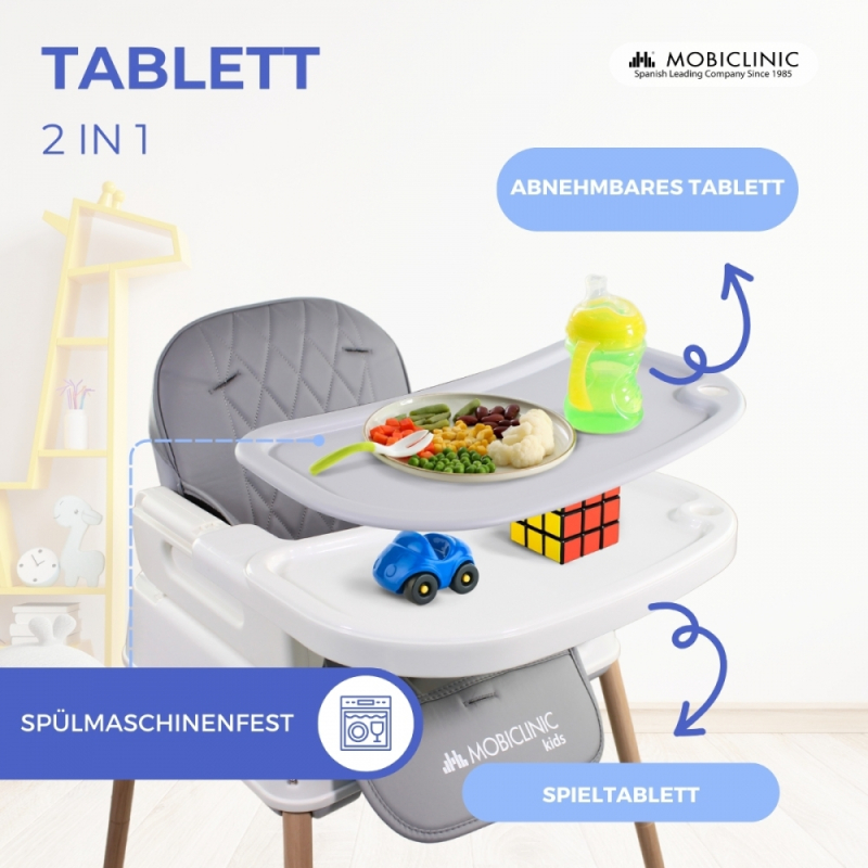 Babyhochstuhl | Evolutionär | Faltbar | 3 in 1 | Verstellbares Tablett | Sicherheitsgurte | Reisen | Spiel | Kiara | Mobiclinic
