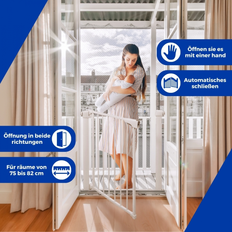 Treppenbarriere Tür |76cm hoch |Kinder |Druck| Automatische Schließung |Doppelte Öffnung |Verstellbar 75–82 cm|Raily|Mobiclinic