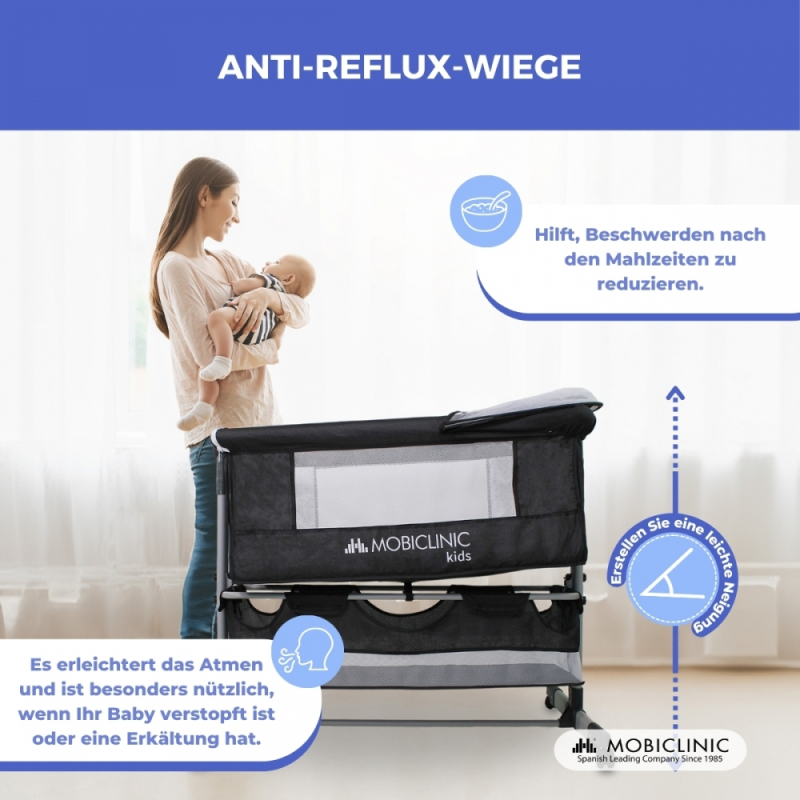 3in1 Kinderbett | Beistellbett |Wippe |3fach höhenverstellbar|Moskitonetz und Korb |Mit Matratze |360ºRäder | Night|Mobiclinic