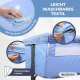 Dieses Modell des Beistellbettes ist sehr bequem, da es sich seitlich öffnen lässt, um das Baby je nach der von unserer Matratze benötigten Höhe zu versorgen. Es ist auch leicht zu transportieren und montieren dank seiner Abmessungen und seine zwei Räder. Zum Lieferumfang gehören eine kleine, halbfeste und flache Unterlage mit einer Dicke von 3 cm und eine Tragetasche für eine einfache Demontage und Lagerung.