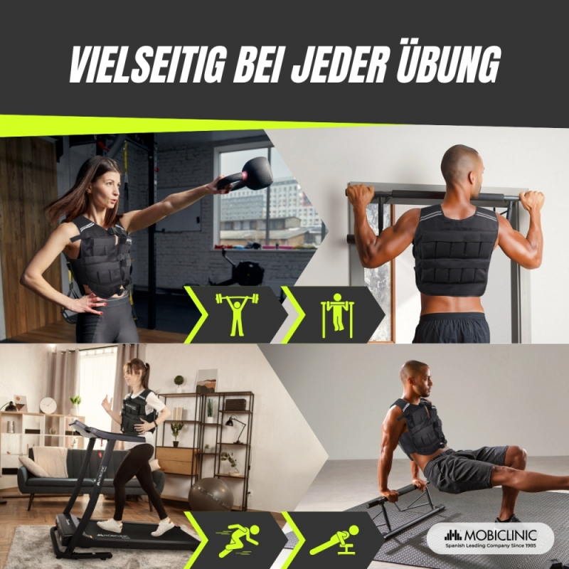 Gewichtsweste | 20 kg | Verstellbares Gewicht | Atmungsaktiv | Gepolstert | Anpassbar | Eisen20 | Schwarz | Mobiclinic