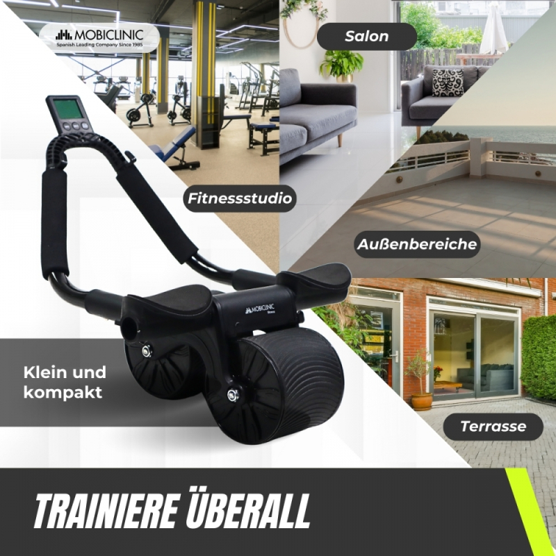 Bauchroller | Ellenbogenstütze | Timer | Matte | Training | Automatischer Rücklauf | Mod RA-02 | Schwarz | Mobiclinic