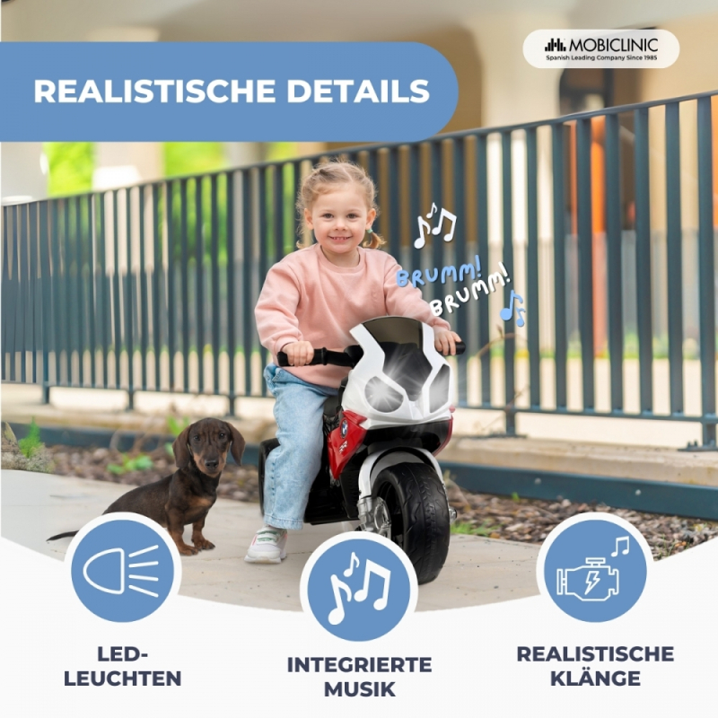 Kinder-Elektromotorrad | 3 Räder | Mit Sound | Licht | 25-W-Motor | MobiXplo | Mobiclinic