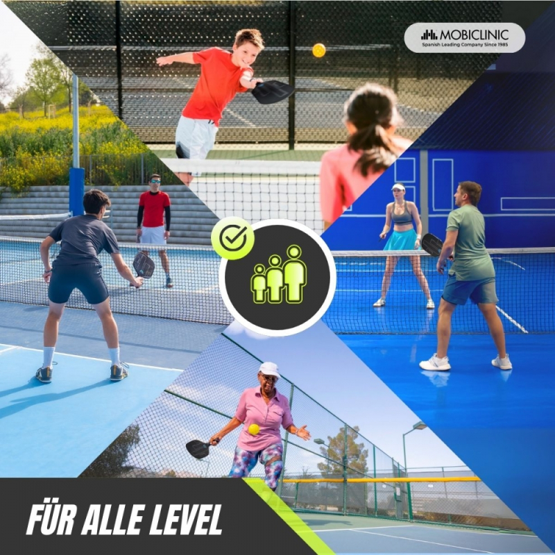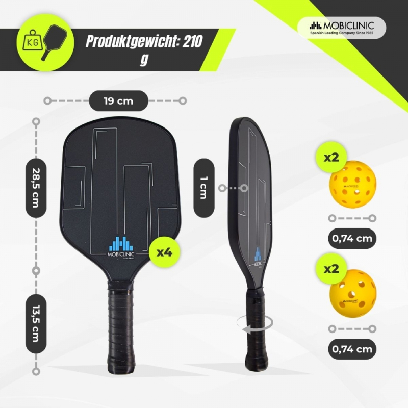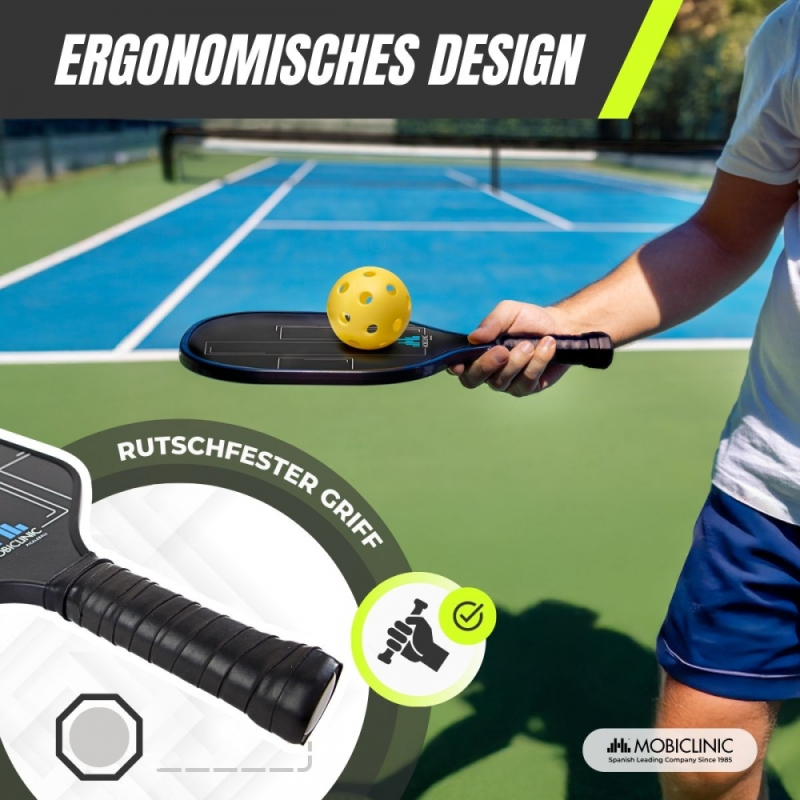 Pickleball-Set | 4 Fiberglasschläger | 4 Bälle | Tragetasche | Rutschfester Griff | Mobiall | Mobiclinic