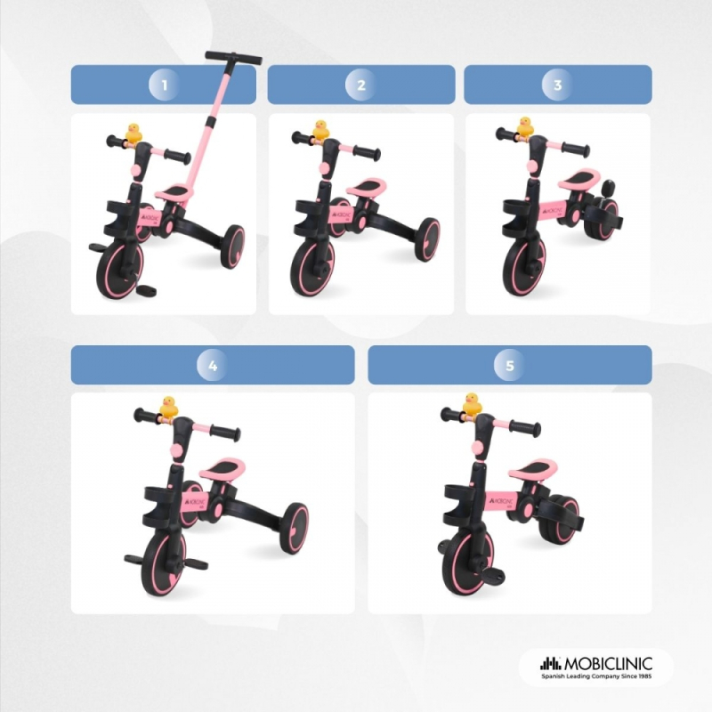 5-in-1 Dreirad | Umbaubar | Verstellbar | Max. 25 kg | Leichtgewicht | 1,5–5 Jahre | Rosa | Chase | Mobiclinic