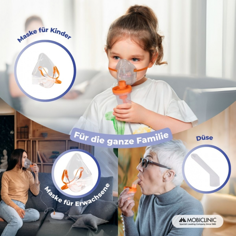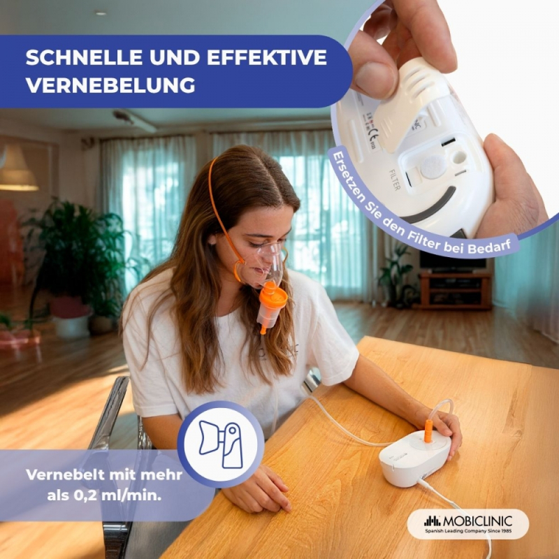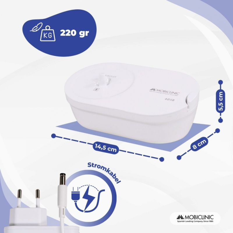 Druckluftvernebler | 2 Masken + Mundstück | Leise | USB | Tragbar und leicht | Nebumobi2 | Mobiclinic