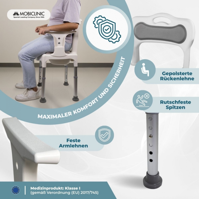 Kaufen Sie jetzt und erhalten Sie es am Mittwoch / Donnerstag nächste Woche Rückgabe: 30 Tage Rückgabefrist Garantie: 2 jahreMAXIMALER KOMFORT: Der Guido Badestuhl verfügt über Kissen an Sitz und Rückenlehne und bietet so ein komfortableres Erlebnis als andere Modelle. Dank seines Designs kann er außerdem als Badestuhl, tragbare Toilette oder Duschstützstuhl verwendet werden.