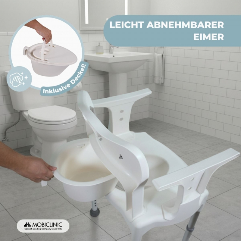 Toilettenstuhl | Höhenverstellbar | Gepolsterte Sitzfläche und Rückenlehne | Rutschfest | 3500 ml | Guido | Mobiclinic