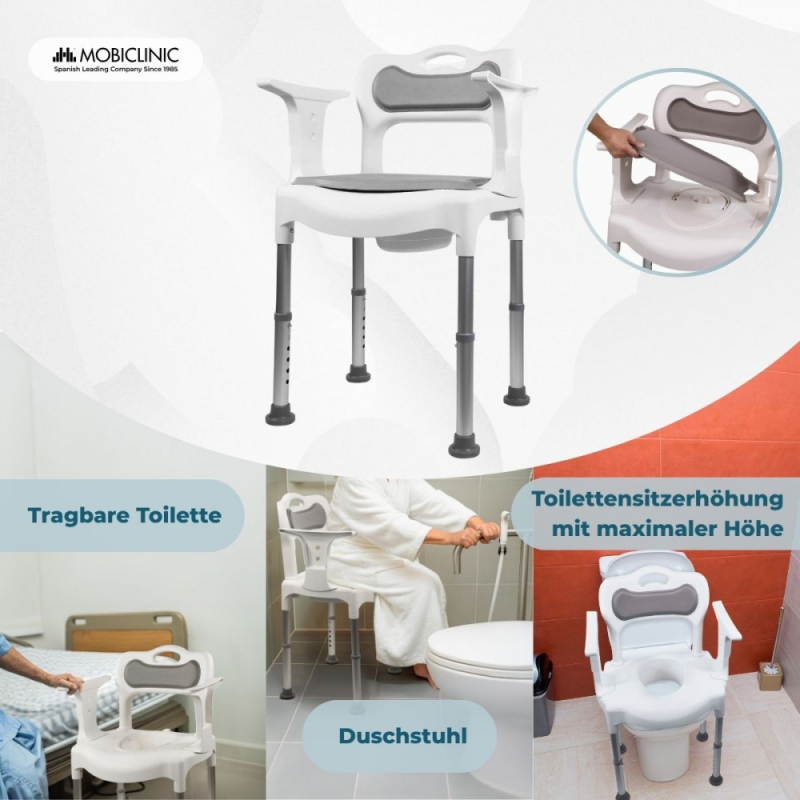 Der Guido Toilettenstuhl ist eine vielseitige, praktische und sichere Lösung für alle, die bei der täglichen Hygiene zusätzliche Unterstützung benötigen. Dank seines multifunktionalen Designs kann er als Badestuhl, tragbare Toilette oder Stützsitz beim Baden verwendet werden und passt sich so an unterschiedliche Situationen und Bedürfnisse an.