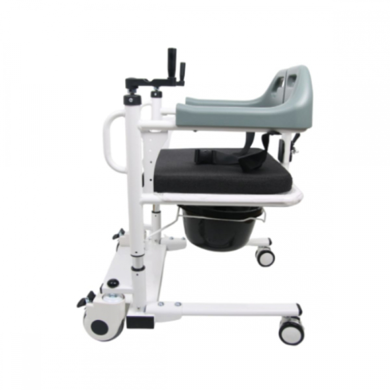 Der Willy-Transferstuhl mit Toilettenfunktion erleichtert die Pflege und Mobilität zu Hause oder in Kliniken. Seine Höhe lässt sich zwischen 79 und 99 cm präzise und stufenlos über synchronisierte Kurbeln verstellen, sodass er sich an Betten, Rollstühle, Sofas oder Sessel anpassen lässt. Dieses System schützt die Pflegeperson und macht den Transfer komfortabler und sicherer.