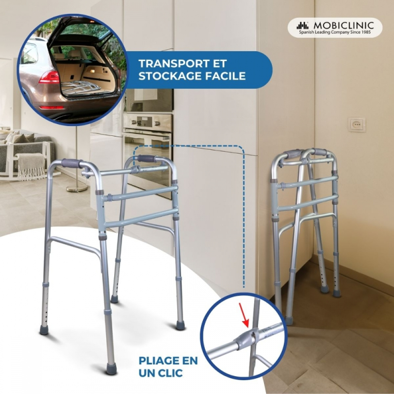 Déambulateur pour personnes âgées | Sans roues | Aluminium ultra léger | Réglable et Pliable | Argenté | Mezquita | Mobiclinic