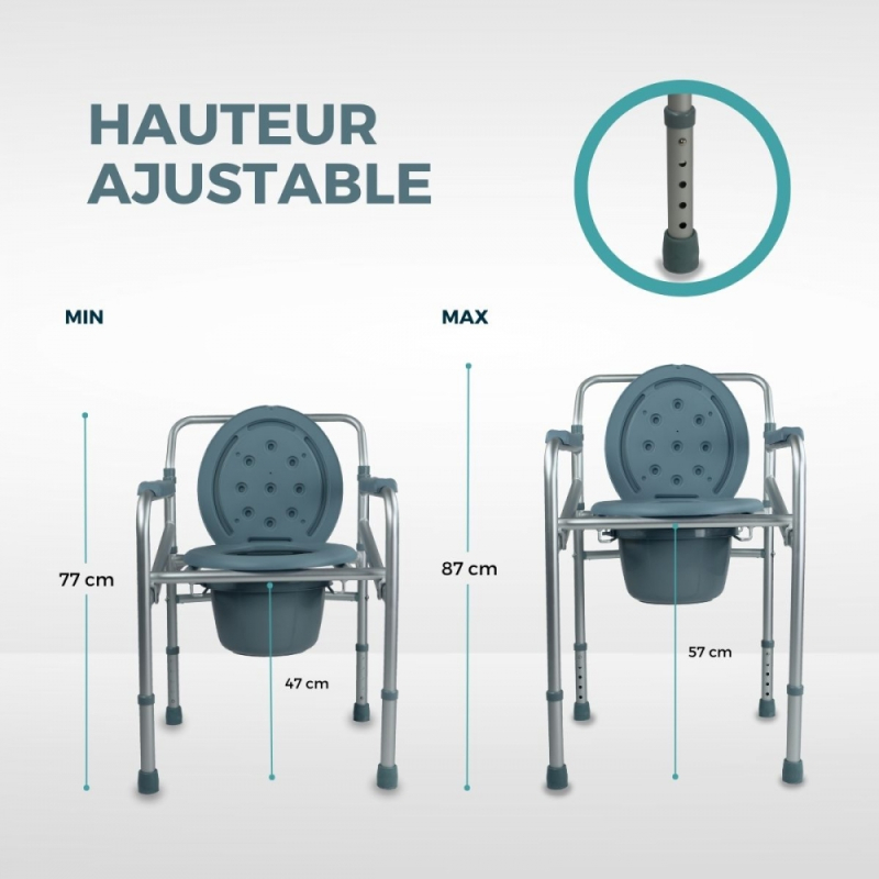 Chaise percée avec WC | Pliable | Légère | Avec couvercle | Hauteur réglable | Accoudoirs | Aluminium | Mar | Mobiclinic