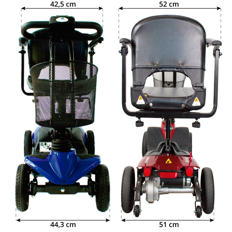 AMOVIBLE : ce scooter pour handicapés peut être démonté en 3 parties maniables (base, siège et accoudoirs), et son guidon rabattable sur la base permet de le transporter facilement n'importe où.