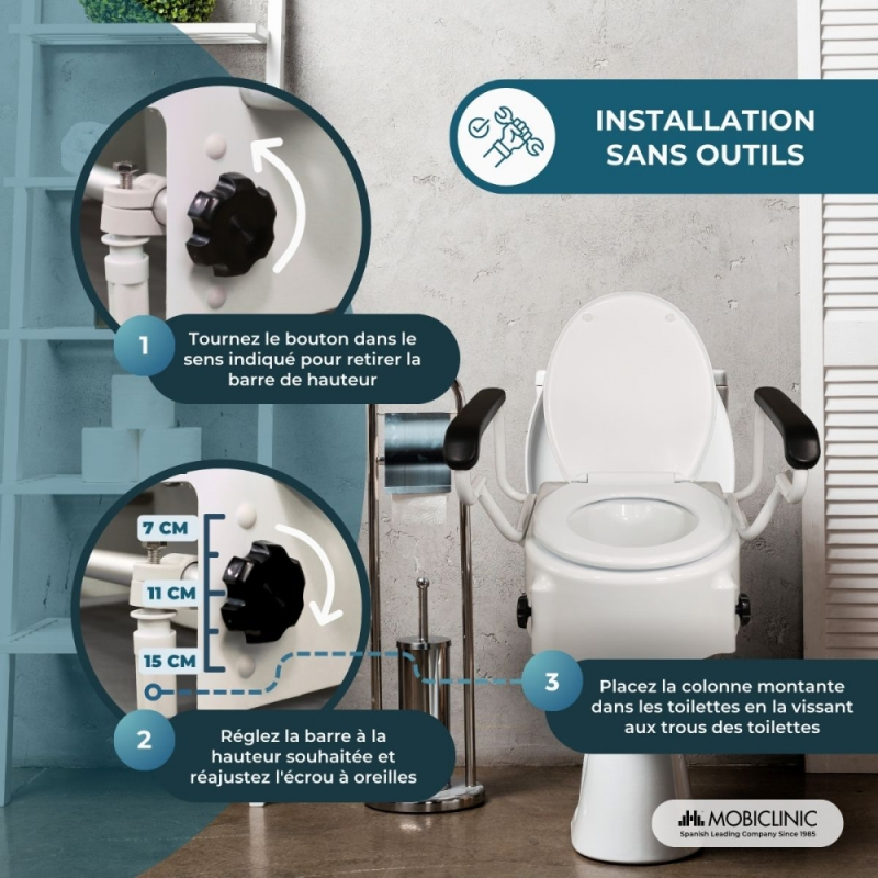 L'installation de l'adaptateur pour WC ne nécessite pas l'aide d'un professionnel car il s'adapte aux dimensions d'un WC classique.