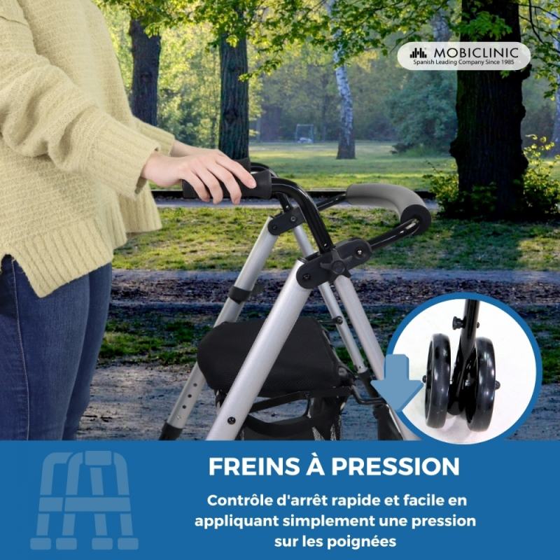 SÉCURITÉ : Ce déambulateur pour adultes est équipé de freins à pression, qui s'activent facilement en pressant les poignées du déambulateur 4 roues. Ce modèle contribue à prévenir les chutes en offrant à l'utilisateur une grande sécurité pour qu'il puisse se déplacer en toute tranquillité et gagner en autonomie et indépendance.