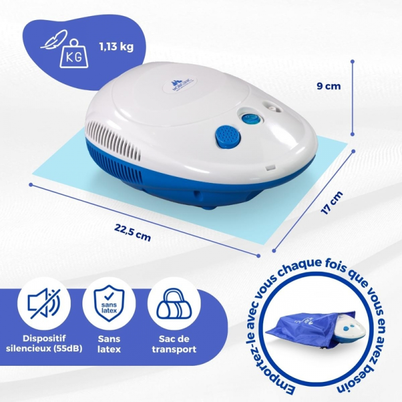 Mini nébuliseur avec compresseur | Blanc et Bleu | Neb-1 | Mobiclinic