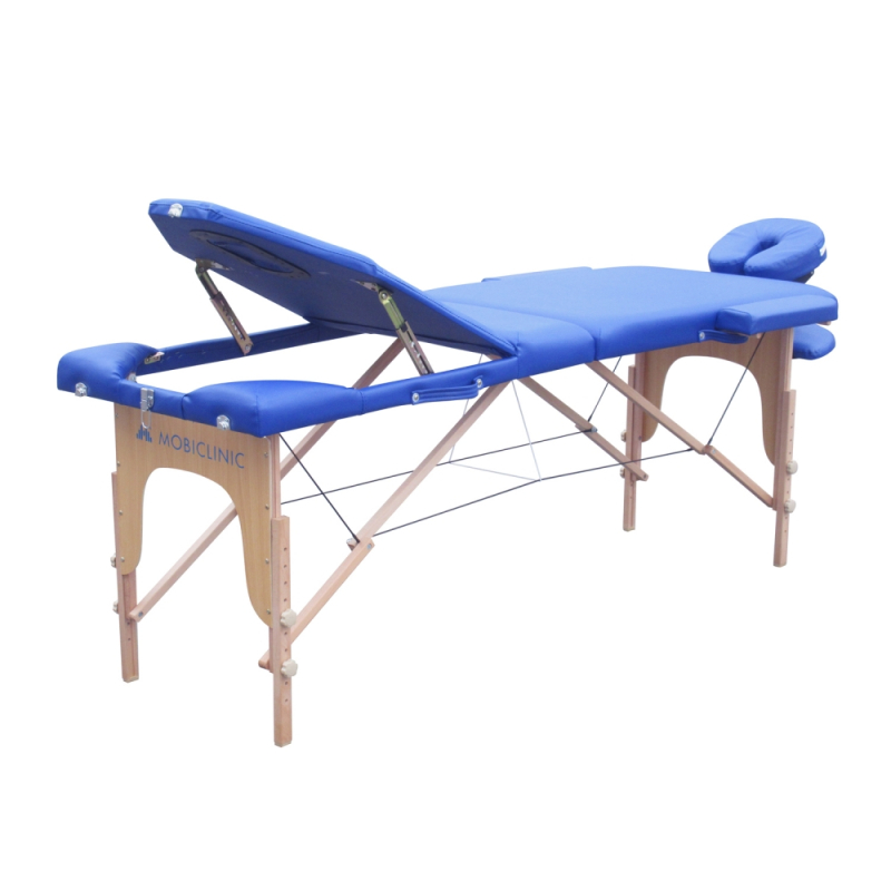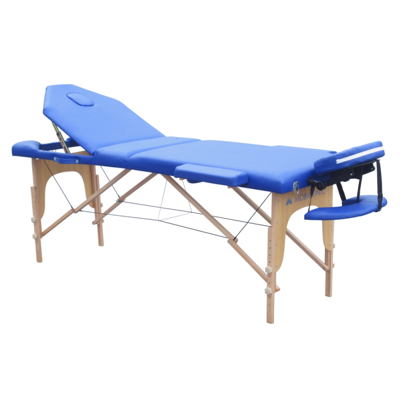 Table de physiothérapie pliable | Appui-tête | Portable | Bois | 186 x 60 cm | Bleu | CM-01 PLUS | Mobiclinic
