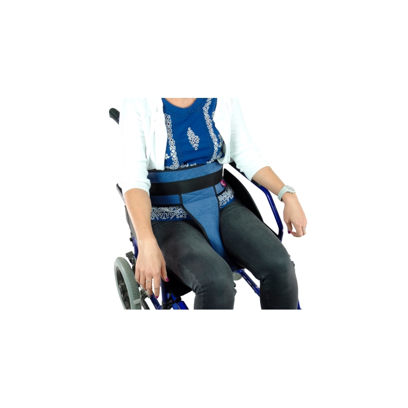 Ceinture périnéale avec boucles adaptable à tous types de fauteuils roulants.