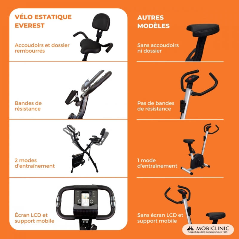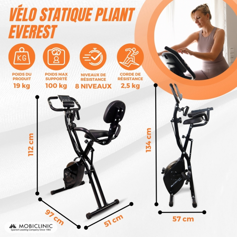 Vélo d´exercice pliable| 8 résistances réglables| Écran LCD| Siège réglable 4 positions | EVEREST | Mobiclinic
