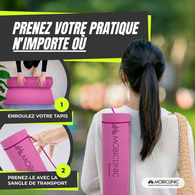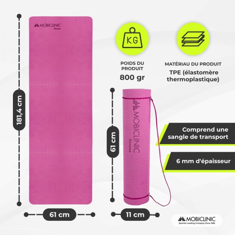 Tapis de yoga | Antidérapant | 181x61x0.6 cm| Flexible | TPE | Lavable | Écologique | Rose |EY-01| Mobiclinic