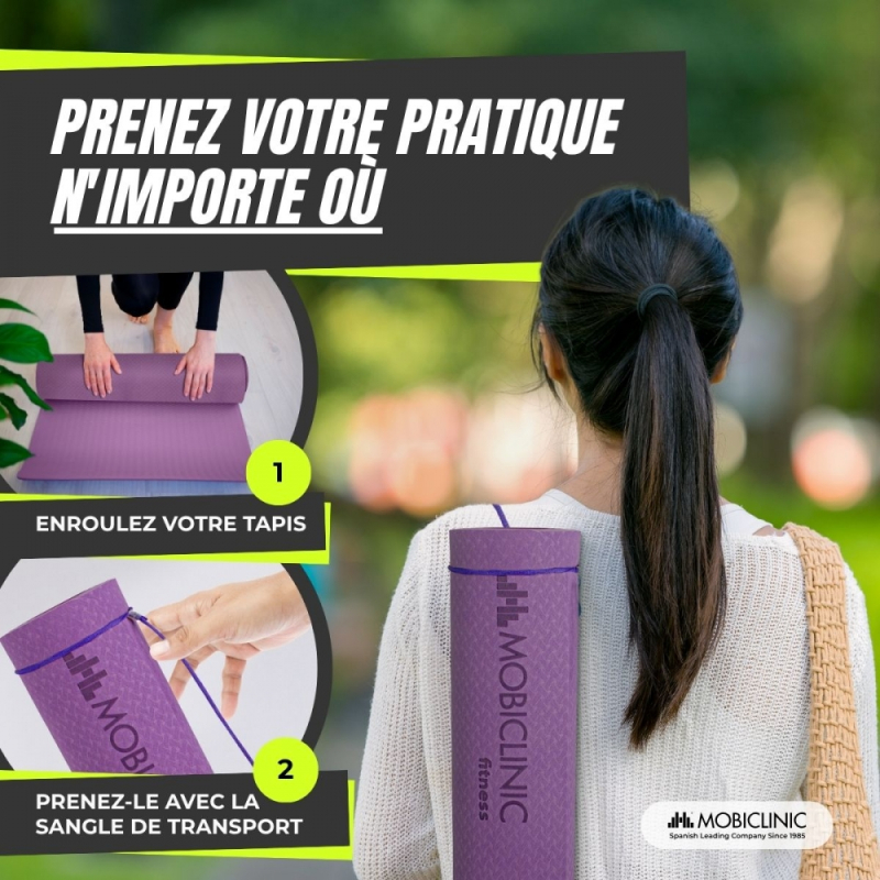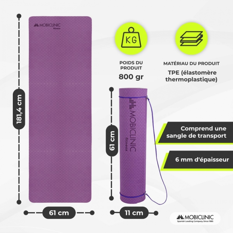 Tapis de yoga | Antidérapant | 181x61x0.6 cm| Flexible | TPE | Lavable | Écologique | Violet |EY-01| Mobiclinic