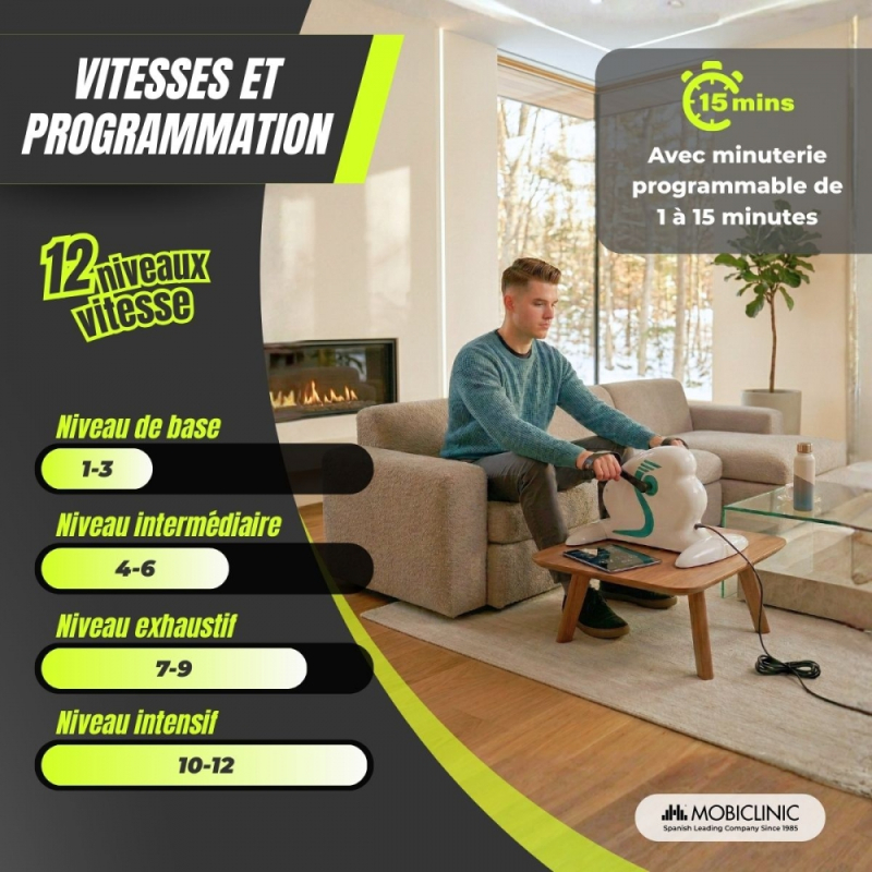 ADAPTABLE : il dispose de régulateurs de vitesse et de résistance s'adaptant à vos besoins et conditions physiques jusqu'à 12 niveaux.