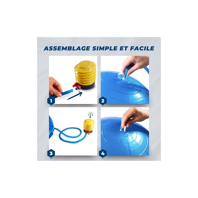 - Ballon de Pilates : ballon antidérapant en PVC, gonfleur inclus.