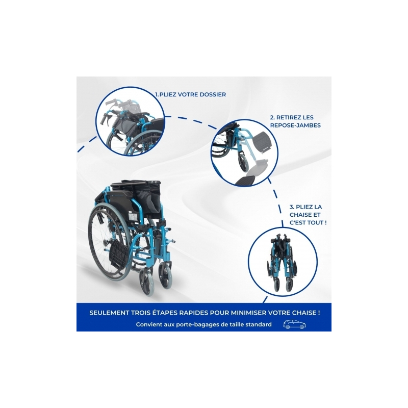 Mobilité et repos > Fauteuils Roulants > Fauteuils roulants pliables en aluminium et en acier > Fauteuils roulants pliables en aluminium