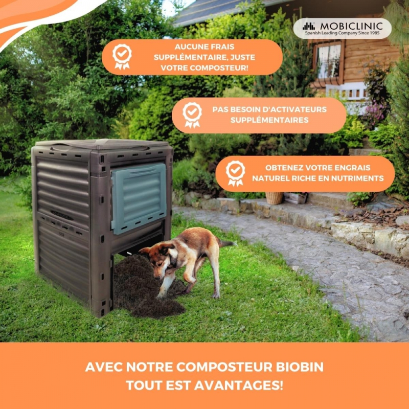 Composteur | Transformateur de déchets | Pour jardin | Sans outils | Écologique | 300 litres | BioBin | Mobiclinic