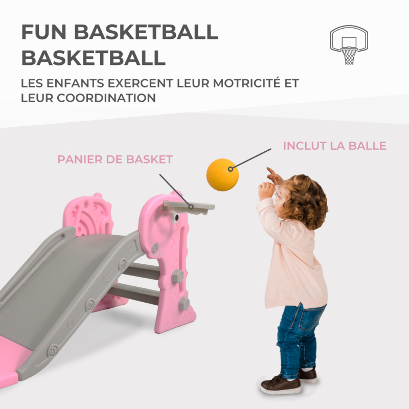 Toboggan pour enfants | Pliable | Panier et ballon | Marches antidérapantes | Max 35 kg | Rose | Dino| Mobiclinic