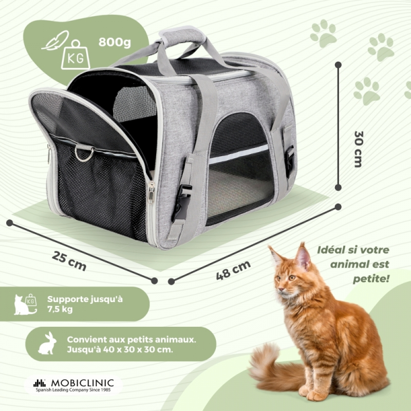 Sac de transport pour animaux | Pliable | 48x25x30 cm | Ventilation | Sangle trolley | Double poignée | Bronco | Mobiclinic
