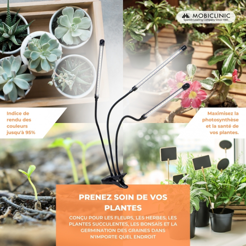 Lámpara de cultivo | LED | 3 modos | 6000K| Negro| Temporizador | 10 niveles de brillo | Giro 360º | Growflex x2| Mobiclinic María . Muy recomendable para los que quieran un cuidado extra para sus plantas 15/11/2023 |