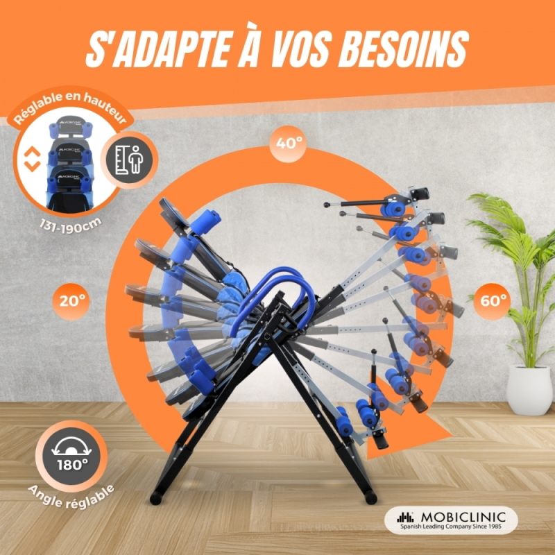 Table d´inversion |Pliable|Réglable 131-190cm |Max 150kg|Inclinaison 180º| Sécurité maximale| Acier |Flexicare |Mobiclinic