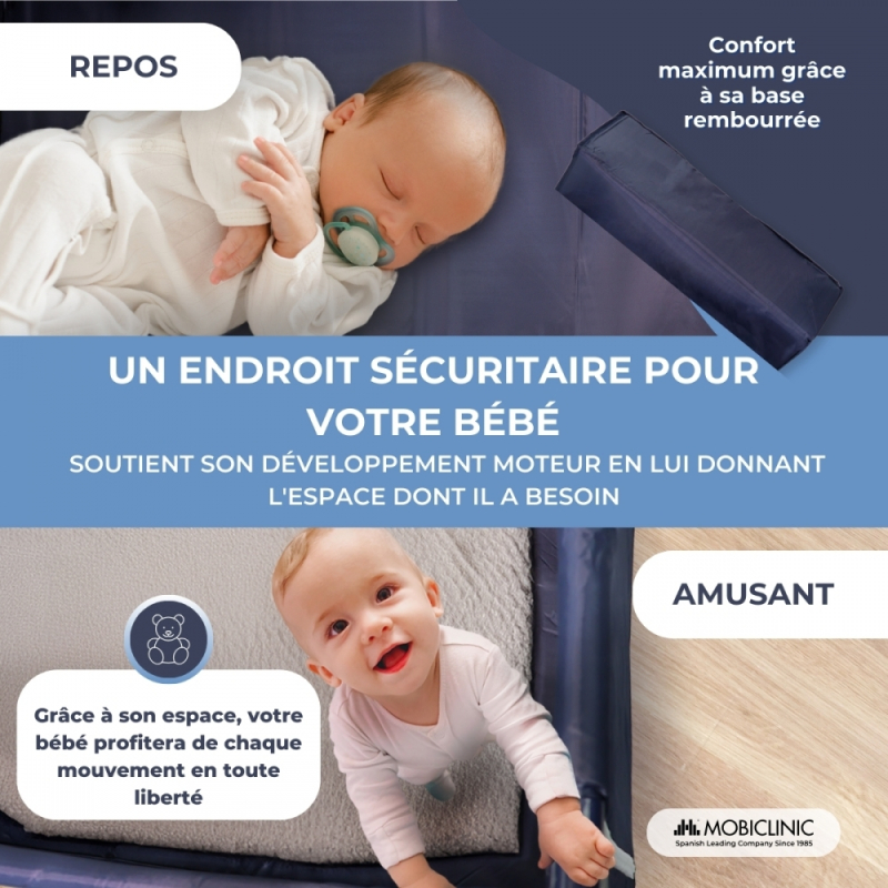 Ce lit de voyage est idéal pour les familles qui voyagent souvent ou qui ont une résidence secondaire. C'est également une option efficace pour laisser le bébé chez les grands-parents, les oncles ou d'autres proches, et même dans les salles de transit afin que le bébé puisse jouer ou se reposer quelques minutes en toute sécurité sous la surveillance d'un adulte.