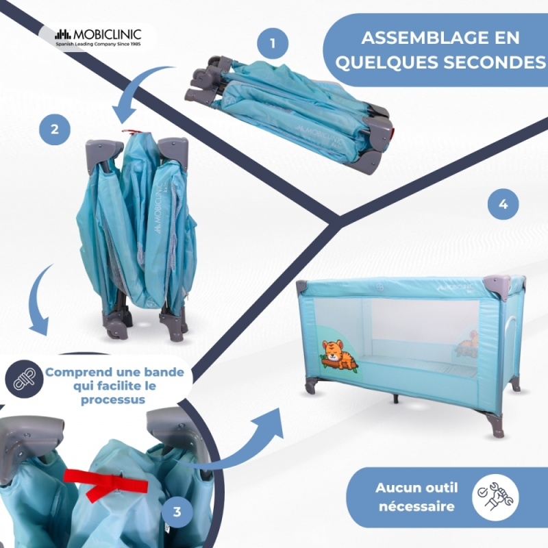 Ce lit de voyage est idéal pour les familles qui voyagent souvent ou qui ont une résidence secondaire. C'est également une option efficace pour laisser le bébé chez les grands-parents, les oncles ou d'autres proches, et même dans les salles de transit afin que le bébé puisse jouer ou se reposer quelques minutes en toute sécurité sous la surveillance d'un adulte.