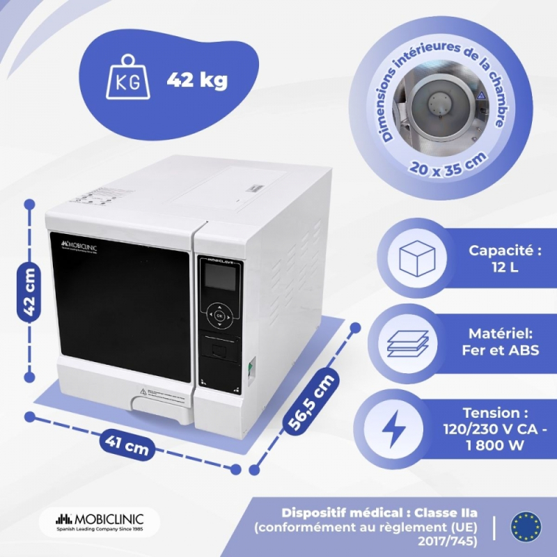 Autoclave esterilizador 12L | Desinfección al 99% | LCD | Impresora y USB | Ciclos Programables | Mobiclave | Mobiclinic Ona . Diseño profesional, robusto y de excelente calidad. Transmite confianza desde el primer uso. 28/12/2025 |